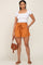 Details A pair of solid shorts with a cinched elastic waist with tie detail and side pockets. Content + Care