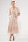Champagne Surplice Belted Long Sleeve Midi Dress