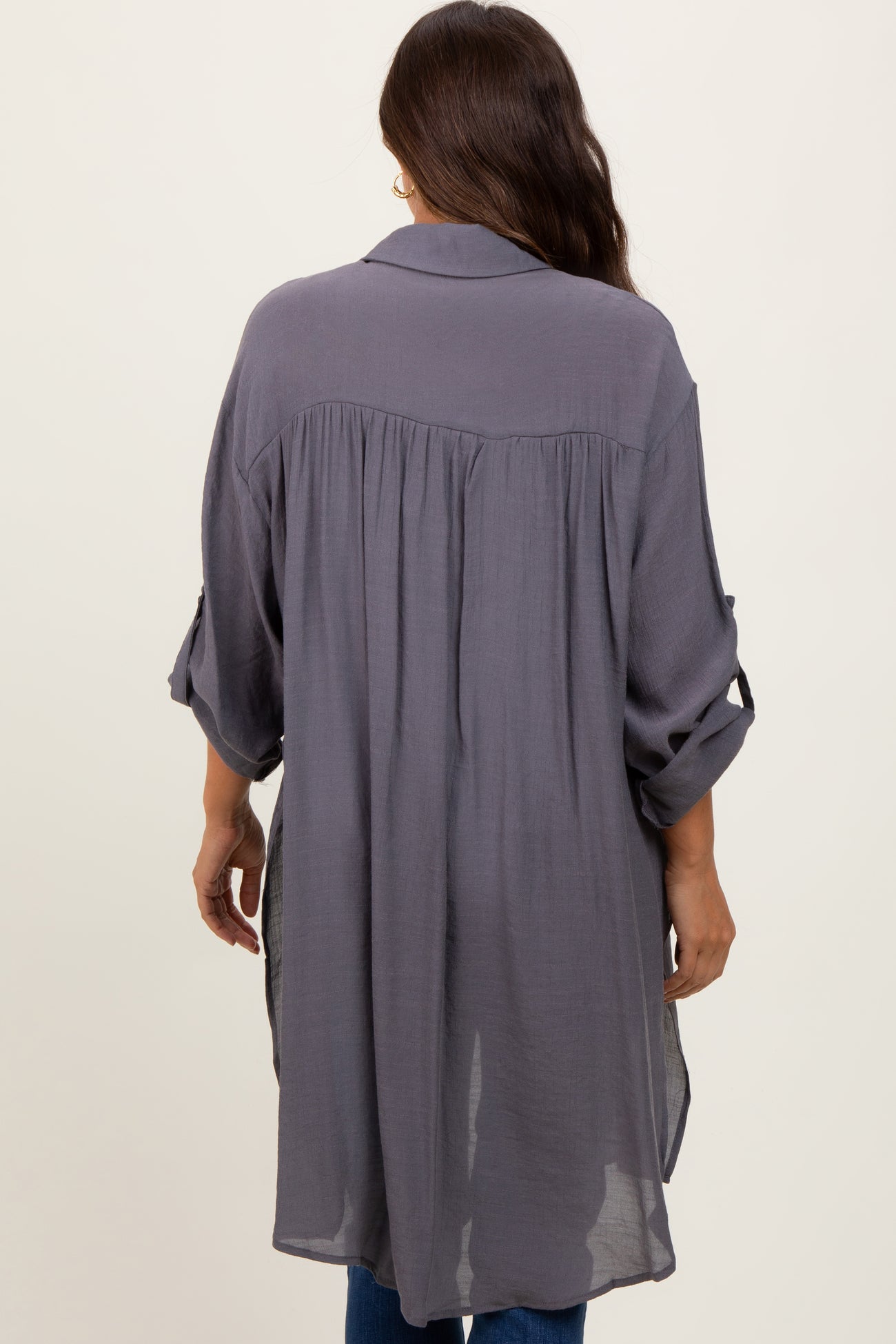 Charcoal Button Front Side Slit Oversized Maternity Blouse