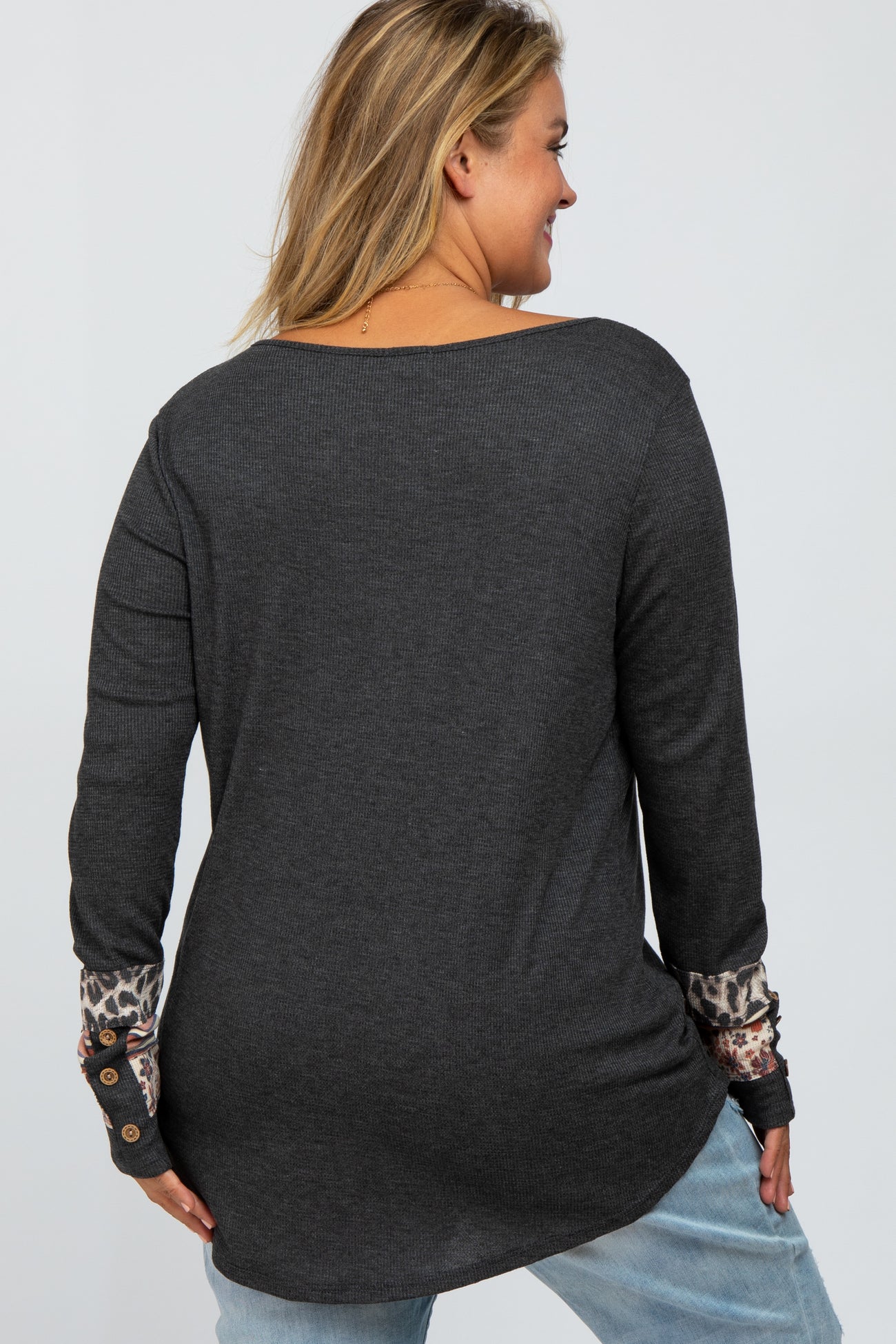Charcoal Colorblock Sleeve Maternity Plus Top