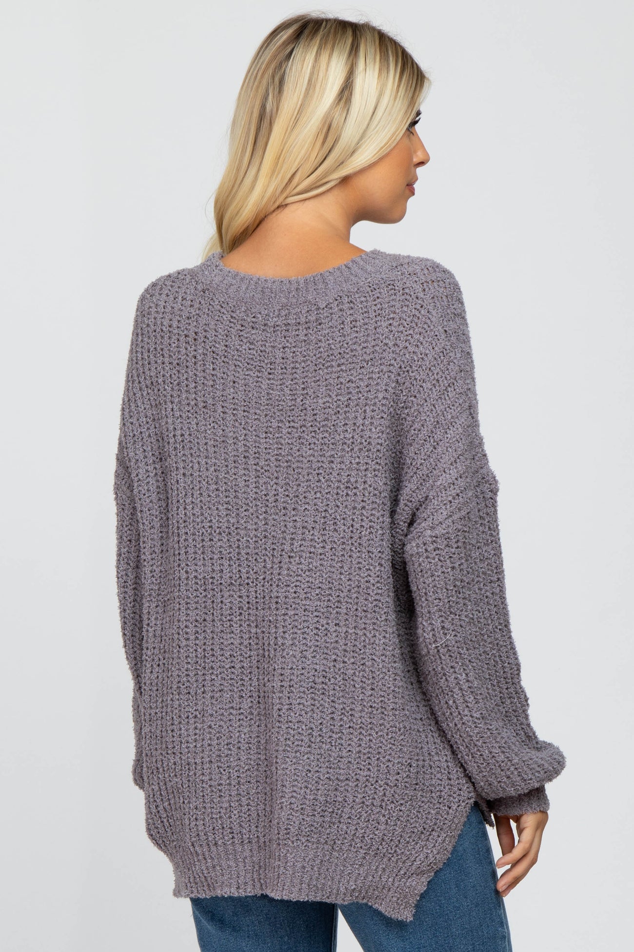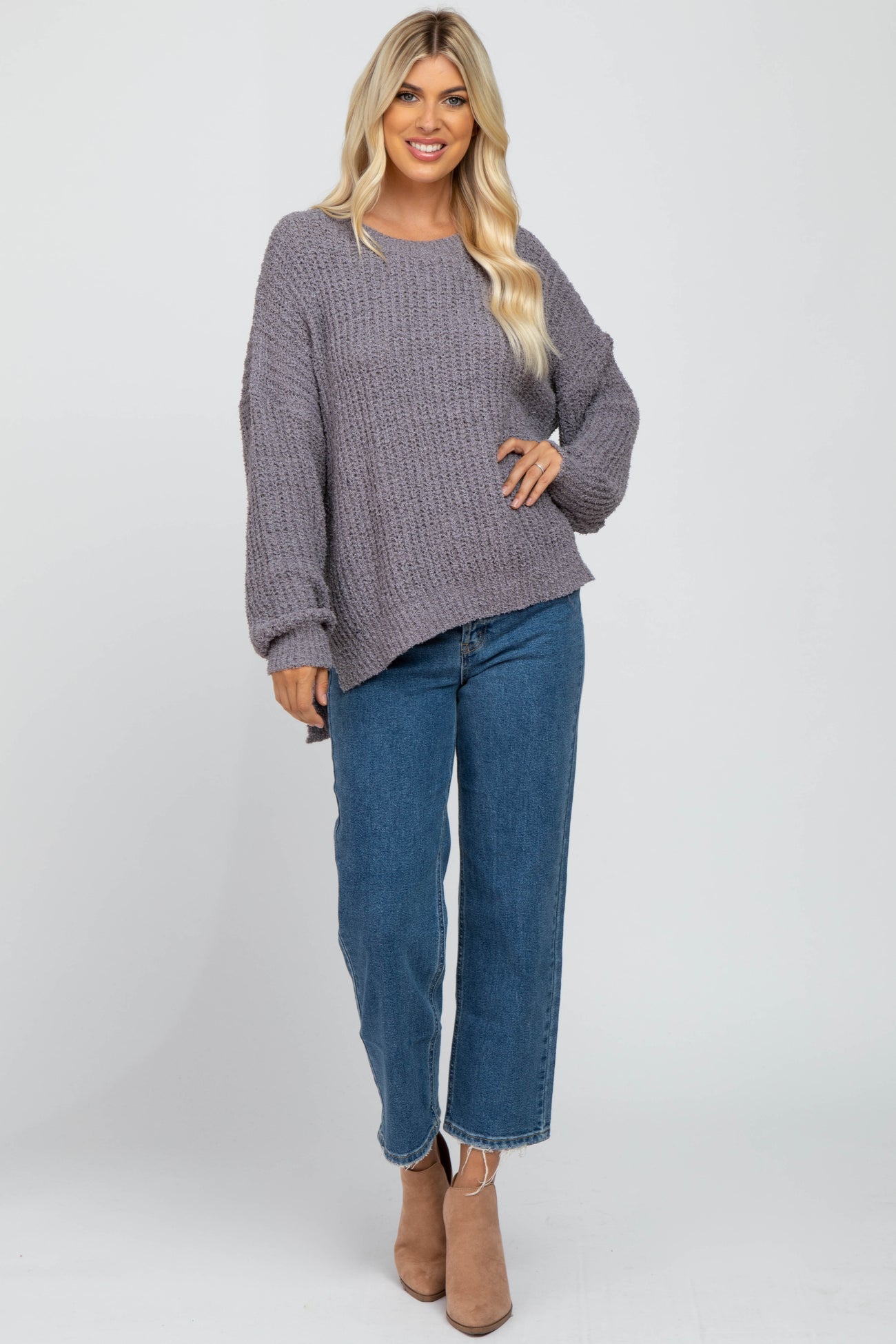 A soft knit sweater featuring a crew neckline, long sleeves with a dropped shoulder, a hi-low hem and side slits.