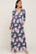 A floral print maternity maxi dress featuring a button front decor, cinched elastic waistline, and v-neckline. Also features side pockets and long sleeves.