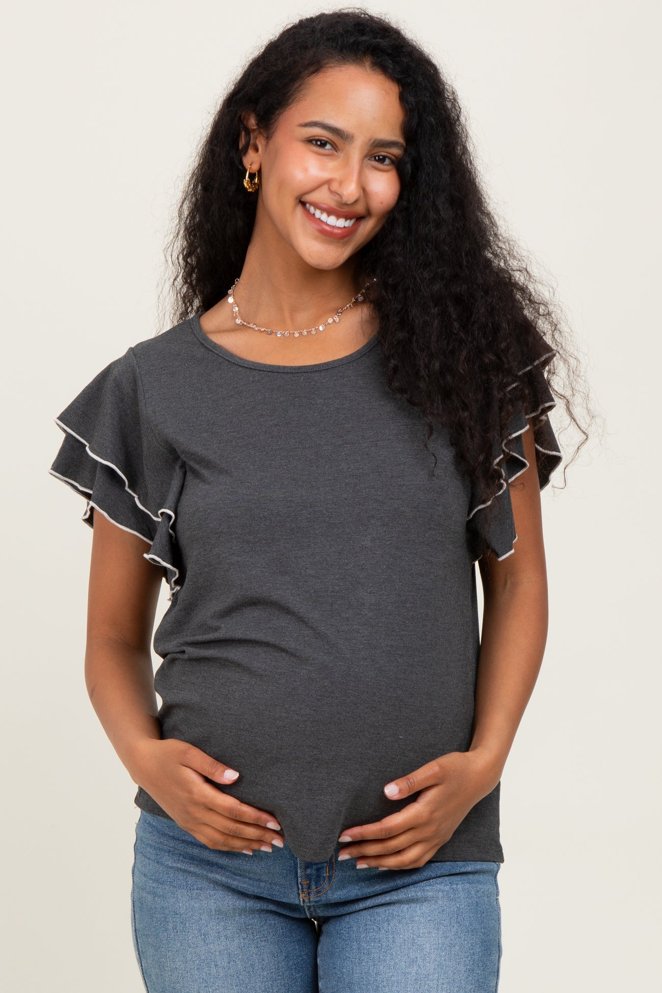Charcoal Layered Ruffle Sleeve Maternity Top