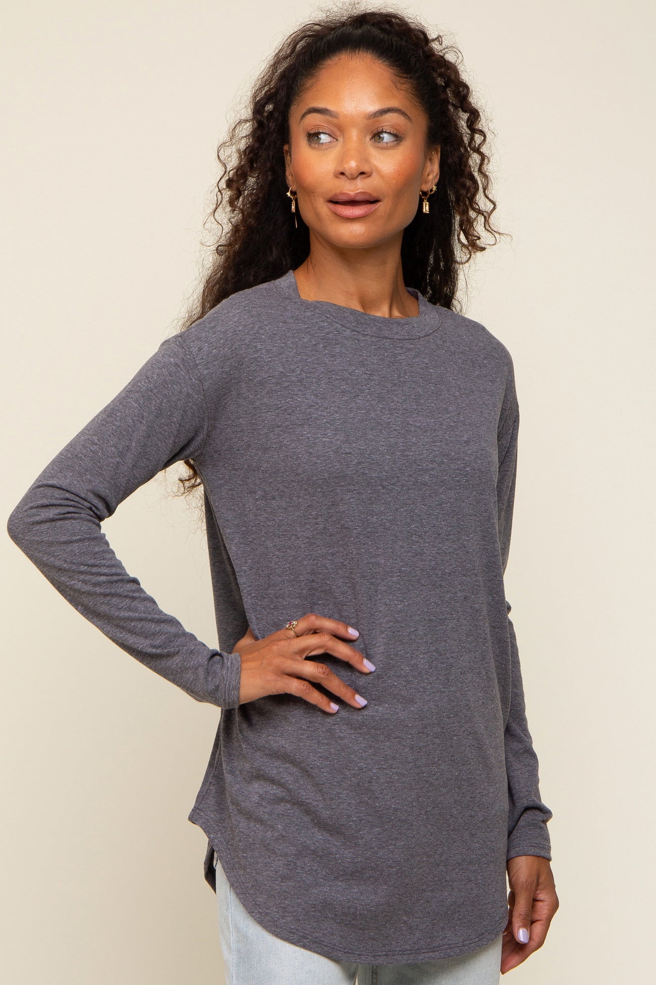 Charcoal Long Sleeve Curved Hem Maternity Top
