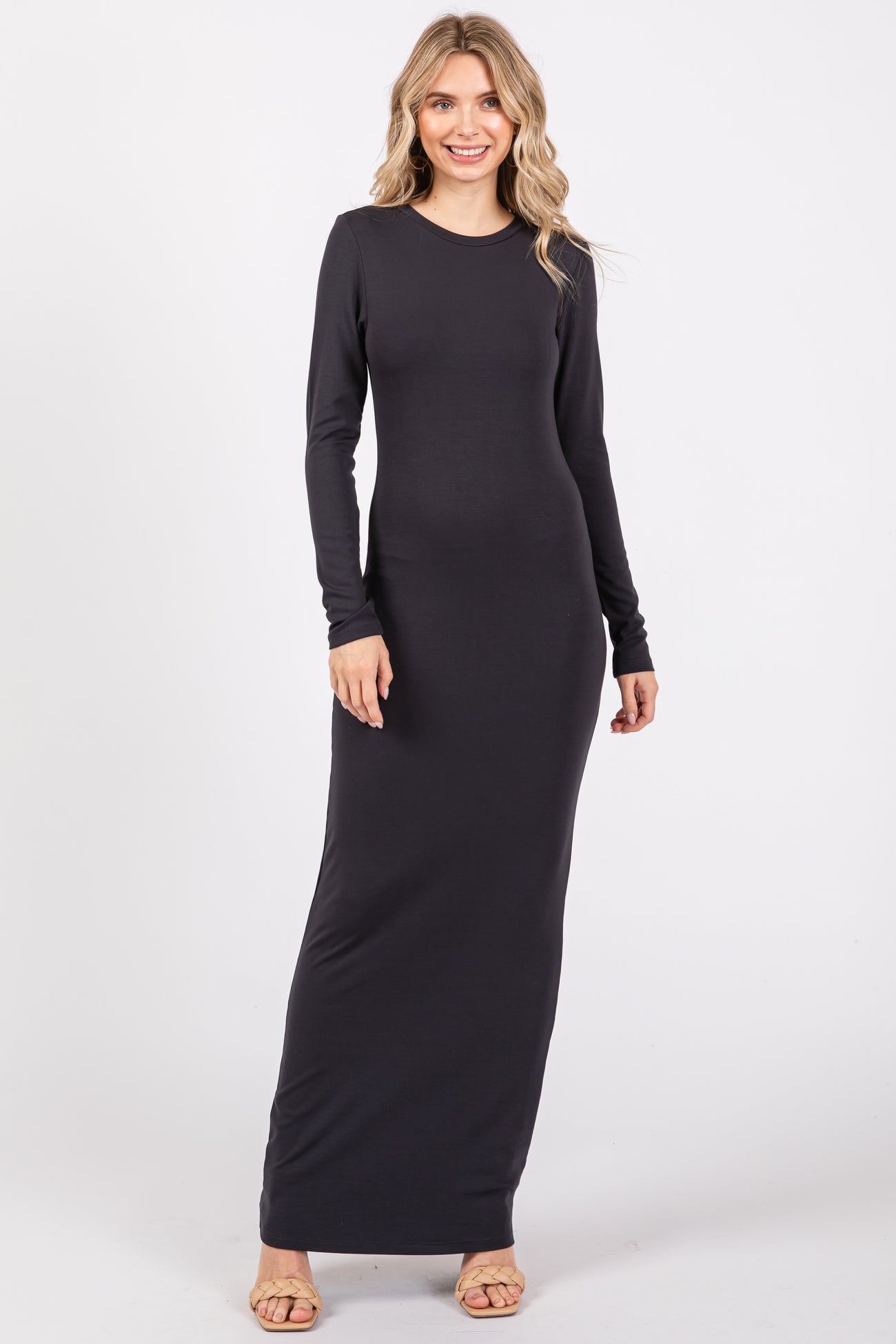 Charcoal Long Sleeve Fitted Maternity Maxi Dress