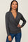 A solid nursing top featuring a wrap v-neckline and long sleeves.