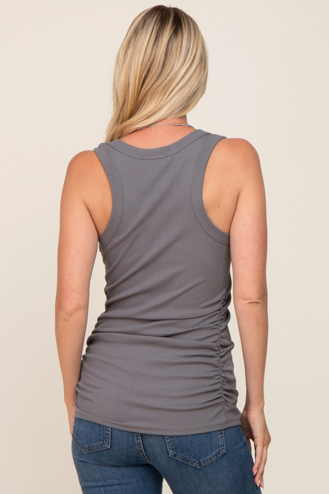 Charcoal Ribbed Sleeveless Ruched Tank Top