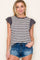 Charcoal Ribbed Striped Flutter Sleeve Top