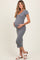 Charcoal Short Sleeve Side Button Ribbed Maternity Midi Dress