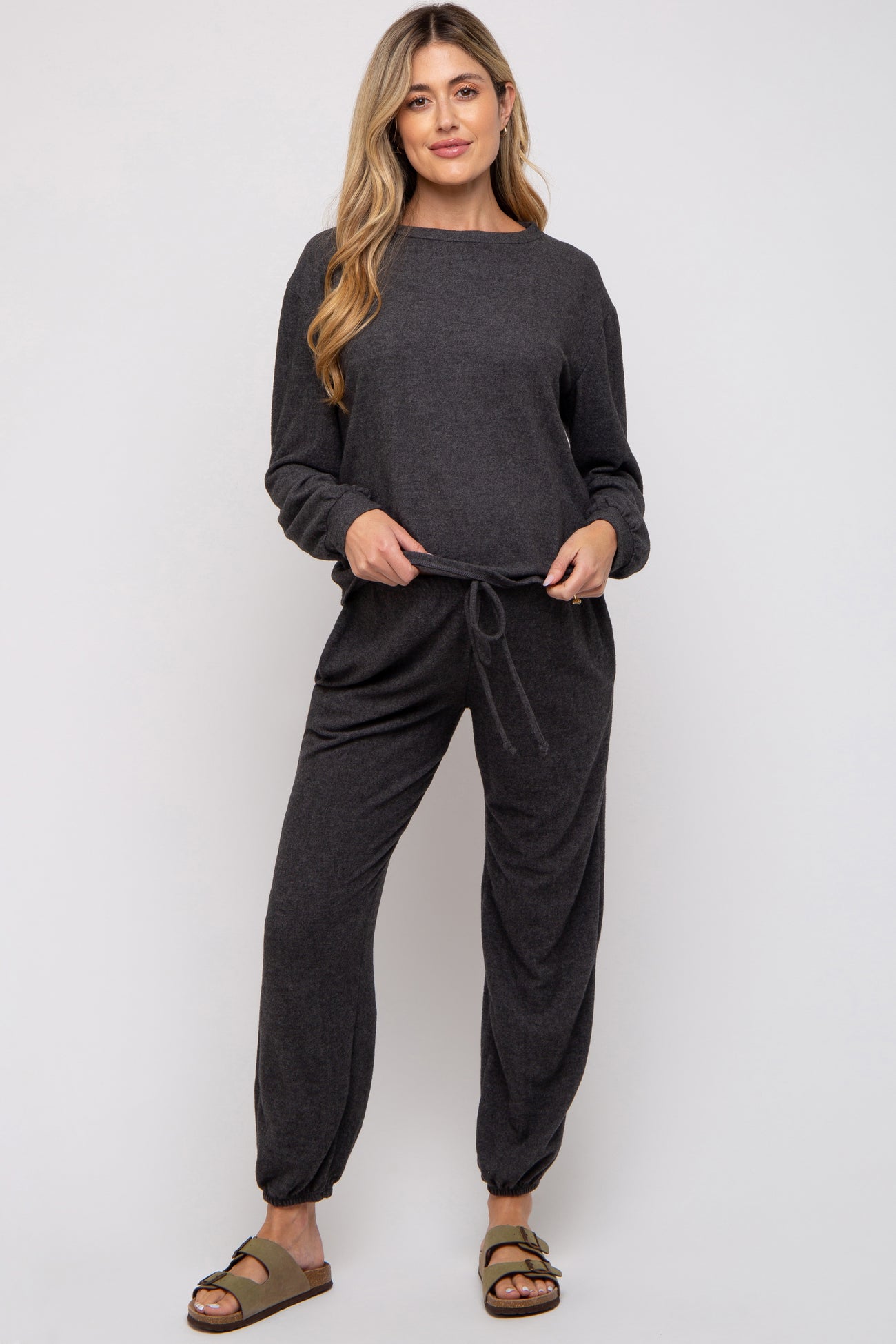 Charcoal Soft Knit Brushed Long Sleeve Maternity Lounge Set