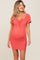 Coral Off-Shoulder Smocked Front Tie Fitted Maternity Dress