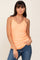 A solid ribbed cami top with adjustable straps and a snap button front detail. Rounded hem.