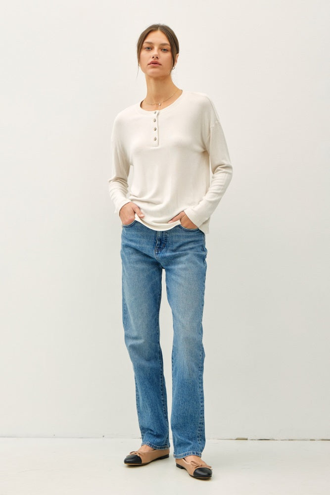Elevate your casual wardrobe with our Cream Brushed Knit Henley Top. Crafted from ultra-soft, brushed knit fabric, this long-sleeve top offers cozy comfort with a flattering relaxed fit. Featuring a classic henley neckline with three functional buttons, it’s perfect for layering or wearing on its own. The cream hue adds a versatile, timeless touch to any outfit. Pair it effortlessly with your favorite jeans or leggings for a chic, everyday look. Ideal for cool days, this breathable top blends style and comfort seamlessly. A must-have staple for effortless, laid-back fashion.