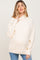 A solid maternity sweater with a turtleneck and button decor on sleeves.