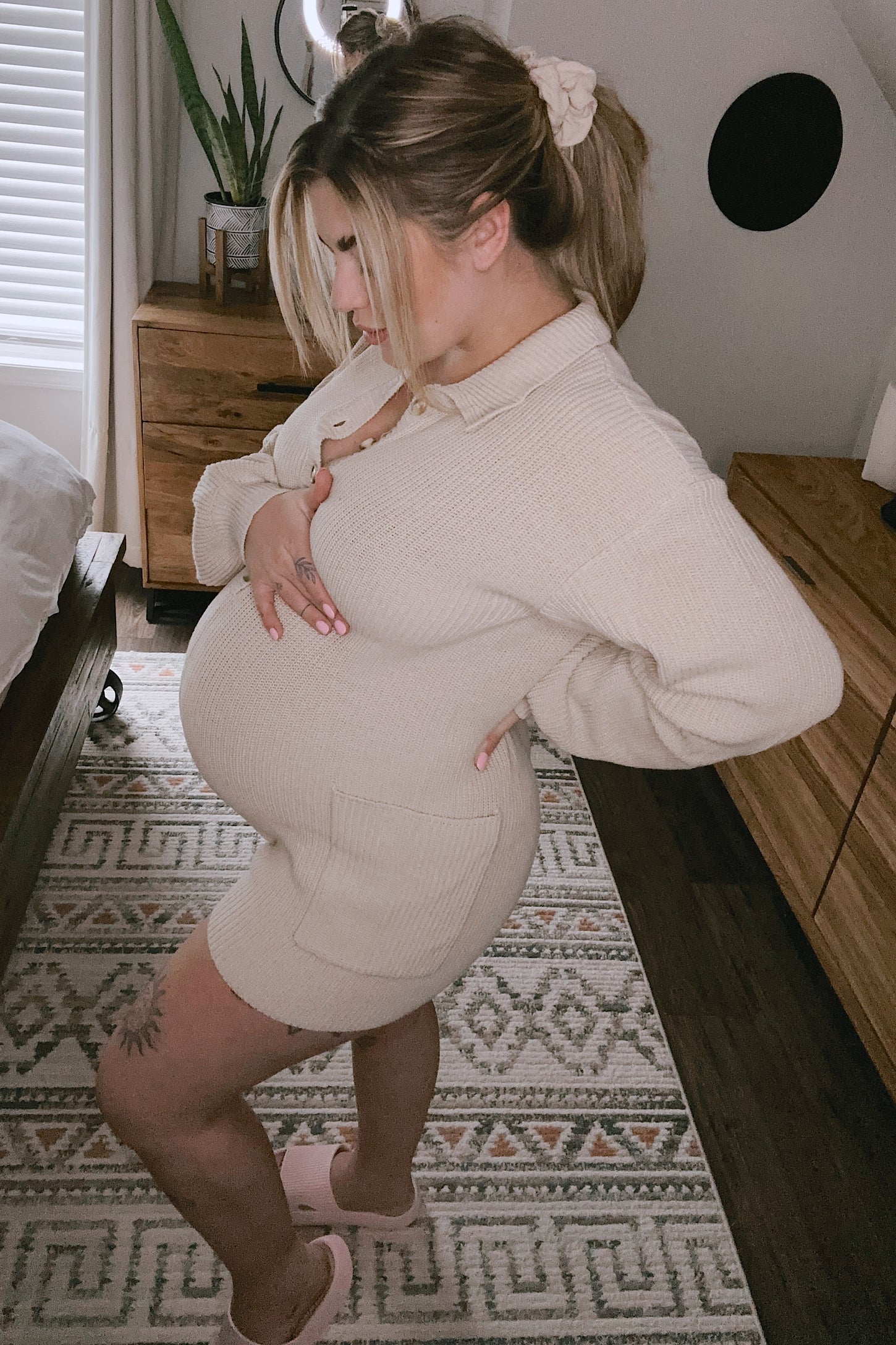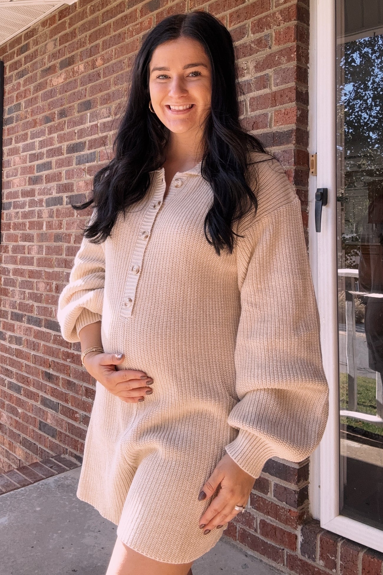Cream Button Down Maternity Sweater Romper