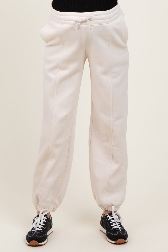Cream Drawstring Relaxed Fit Maternity Sweatpants