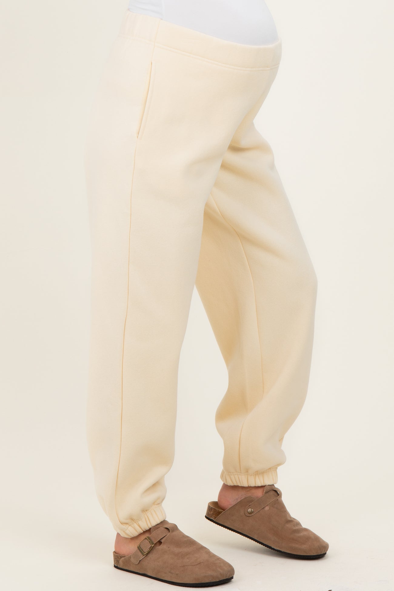Cream Fleece Maternity Sweatpants