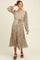 Cream Floral Chiffon Long Sleeve Pleated Maternity Midi Dress