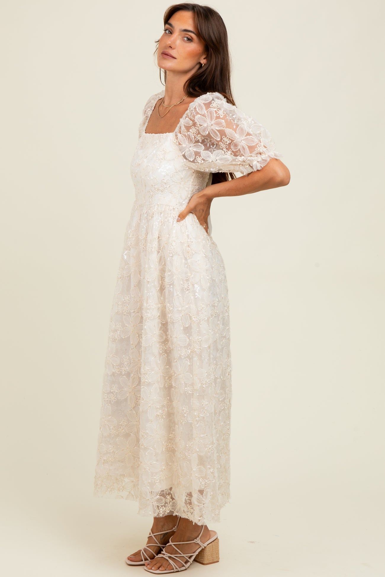 Embrace elegance with our Cream Floral Mesh Overlay Tie Back Midi Dress. This stunning piece features a delicate floral mesh overlay that adds texture and romance to your look. The square neckline and puffed sleeves create a flattering silhouette, while the midi length offers graceful movement and versatility. A charming tie-back detail accentuates the waist, enhancing your natural shape. Perfect for garden parties, weddings, or special occasions, this dress pairs beautifully with strappy sandals or heels. Feel effortlessly chic and feminine in this timeless cream dress designed to make every moment memorable.