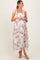 Cream Floral Smocked Shoulder Tie Ruffled Maternity Midi Dress