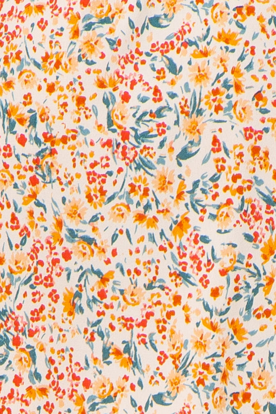 Cream Floral Smocked Waist Tie Dress