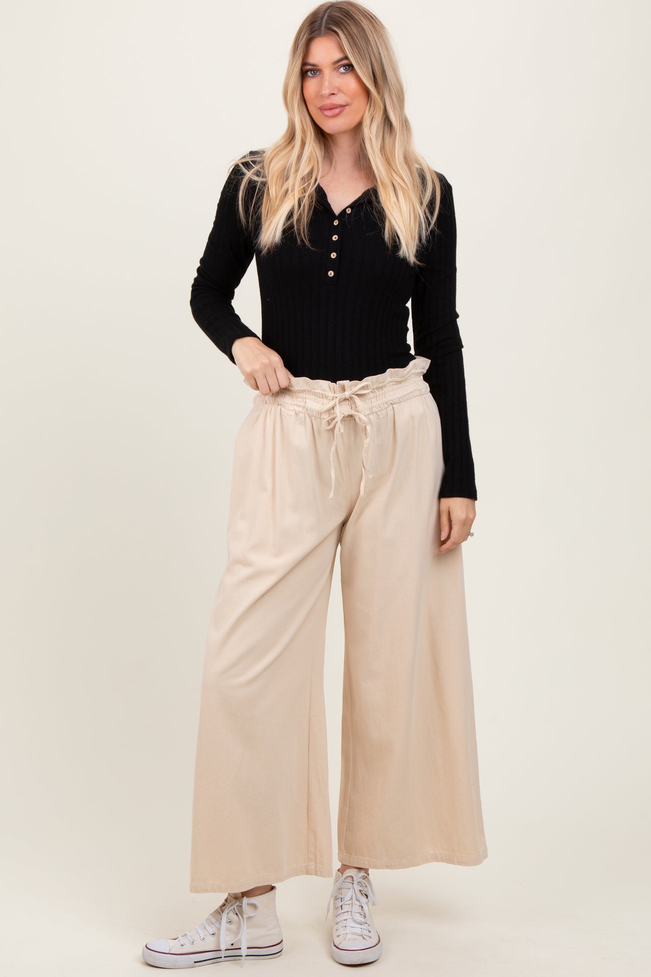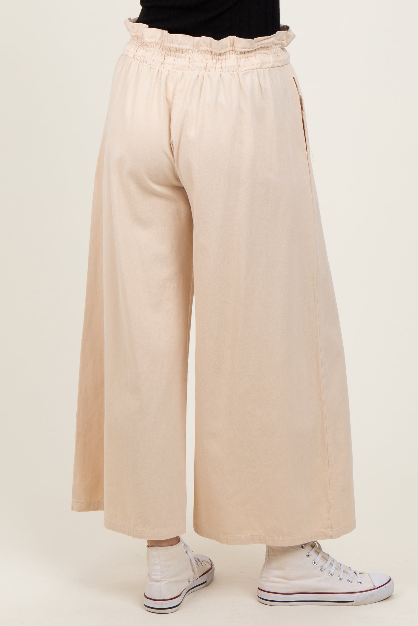 Cream Flowy Cropped Pant