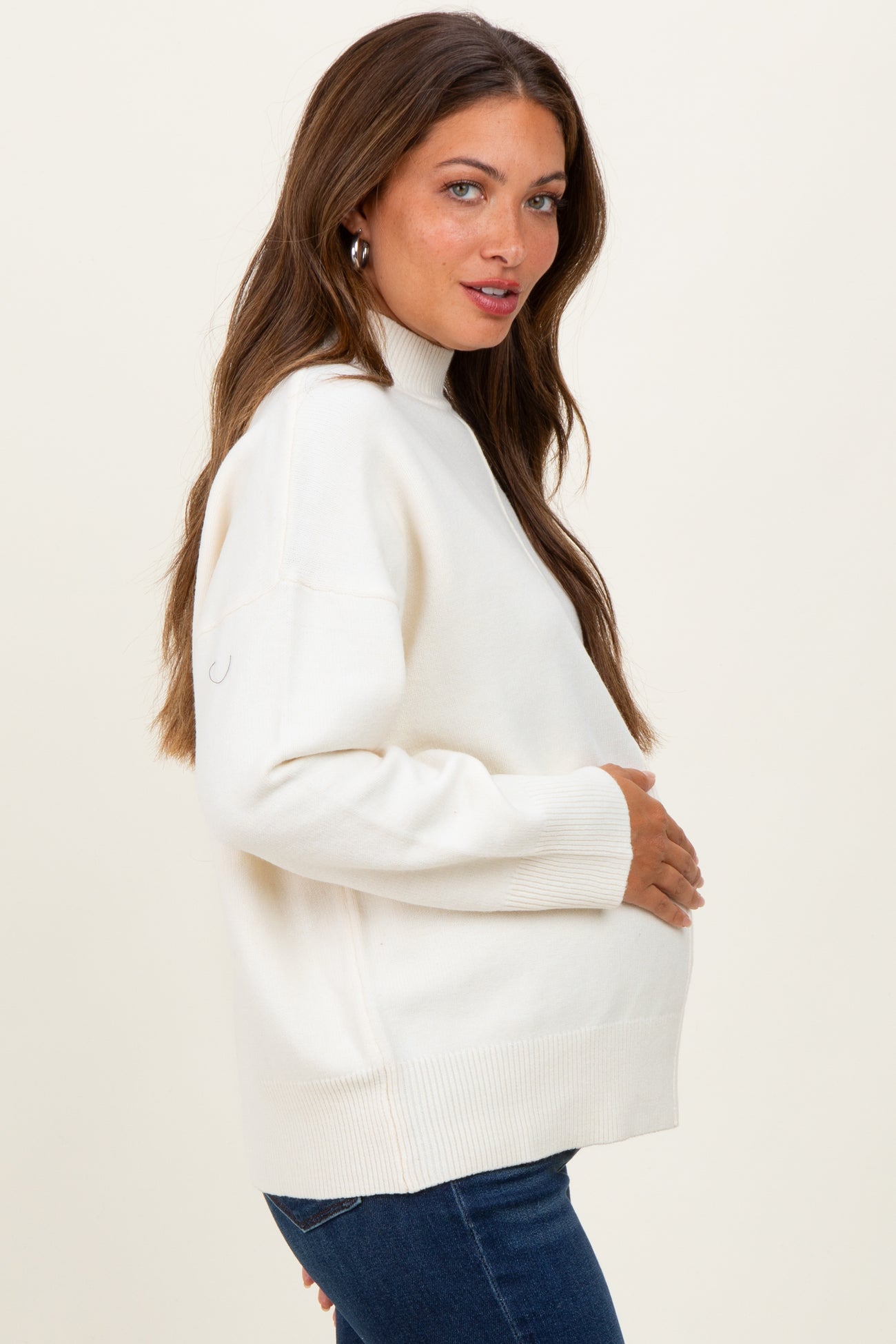 Stay cozy and stylish throughout your pregnancy with our Cream Front Seam Mock Neck Maternity Sweater. Crafted from a soft, breathable fabric, this sweater features a flattering mock neck and a sleek front seam detail that adds a touch of modern elegance. Its relaxed fit accommodates your growing bump comfortably, while the ribbed cuffs and hem offer a polished finish. Perfect for layering or wearing on its own, this versatile cream sweater pairs effortlessly with your favorite maternity jeans or leggings. Embrace warmth and timeless style with this must-have maternity essential. Machine washable for easy care.