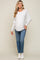 A solid knit maternity top featuring long dolman sleeves and a rounded neckline.