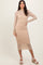 Cream Lace Overlay Long Sleeve Fitted Midi Dress