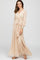 Details A chiffon maxi dress featuring metallic yarn, a wrap front v-neckline, long sleeves with a three gold button closure a self tie sash, and double lined at the bust and skirt. Content + Care