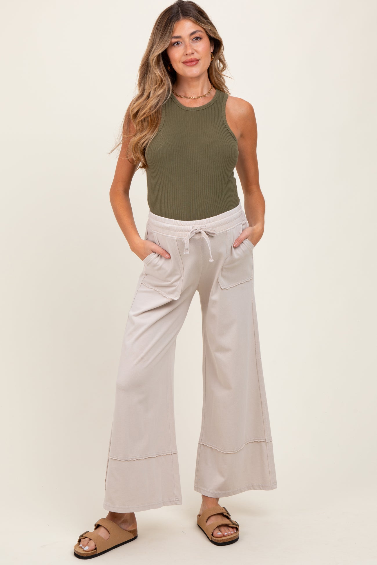 Cream Mineral Wash Wide Leg Ankle Maternity Pants
