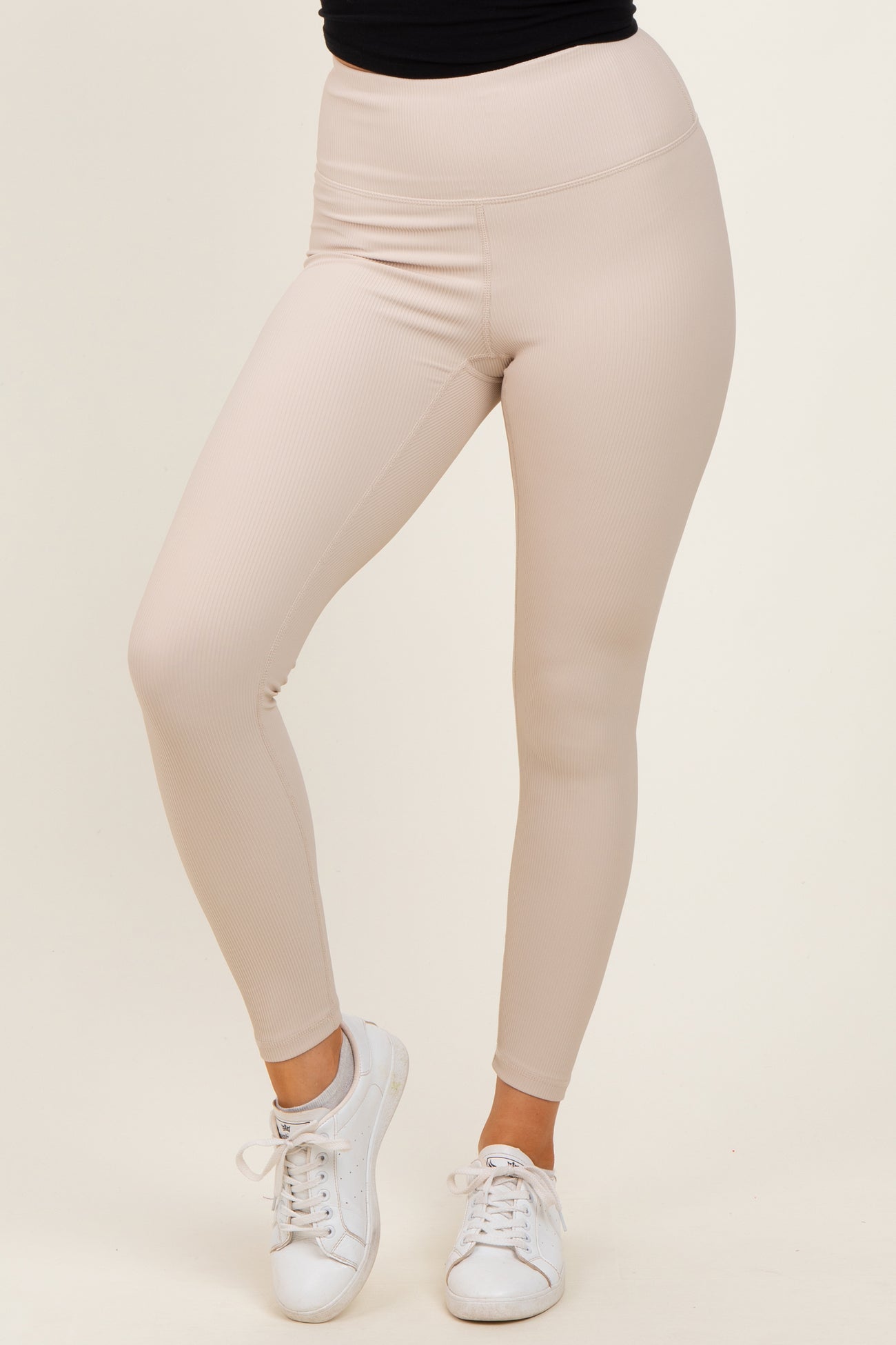 Cream Ribbed Leggings
