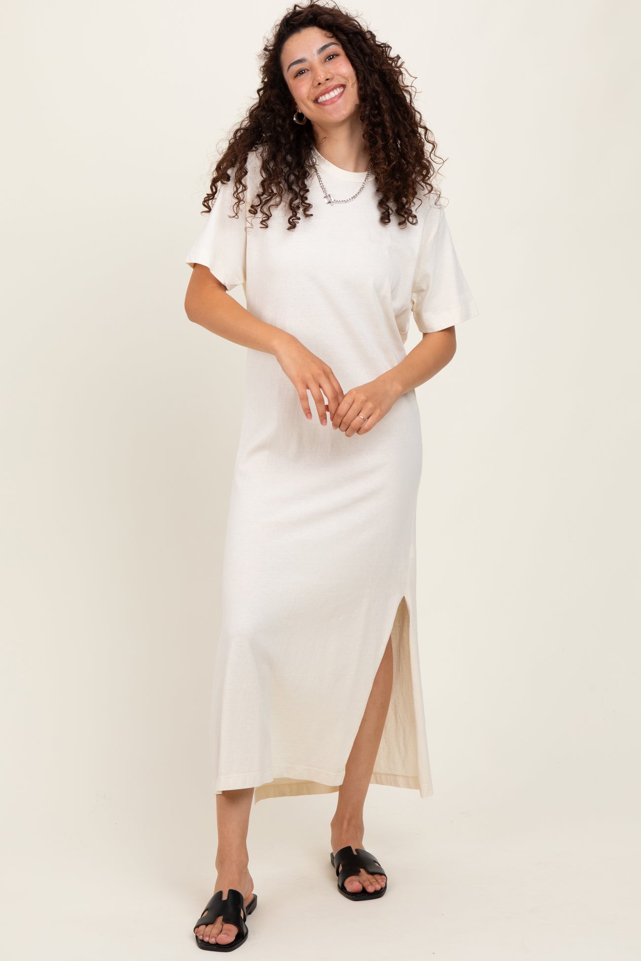 Cream Short Sleeve Knit T-Shirt Maternity Maxi Dress