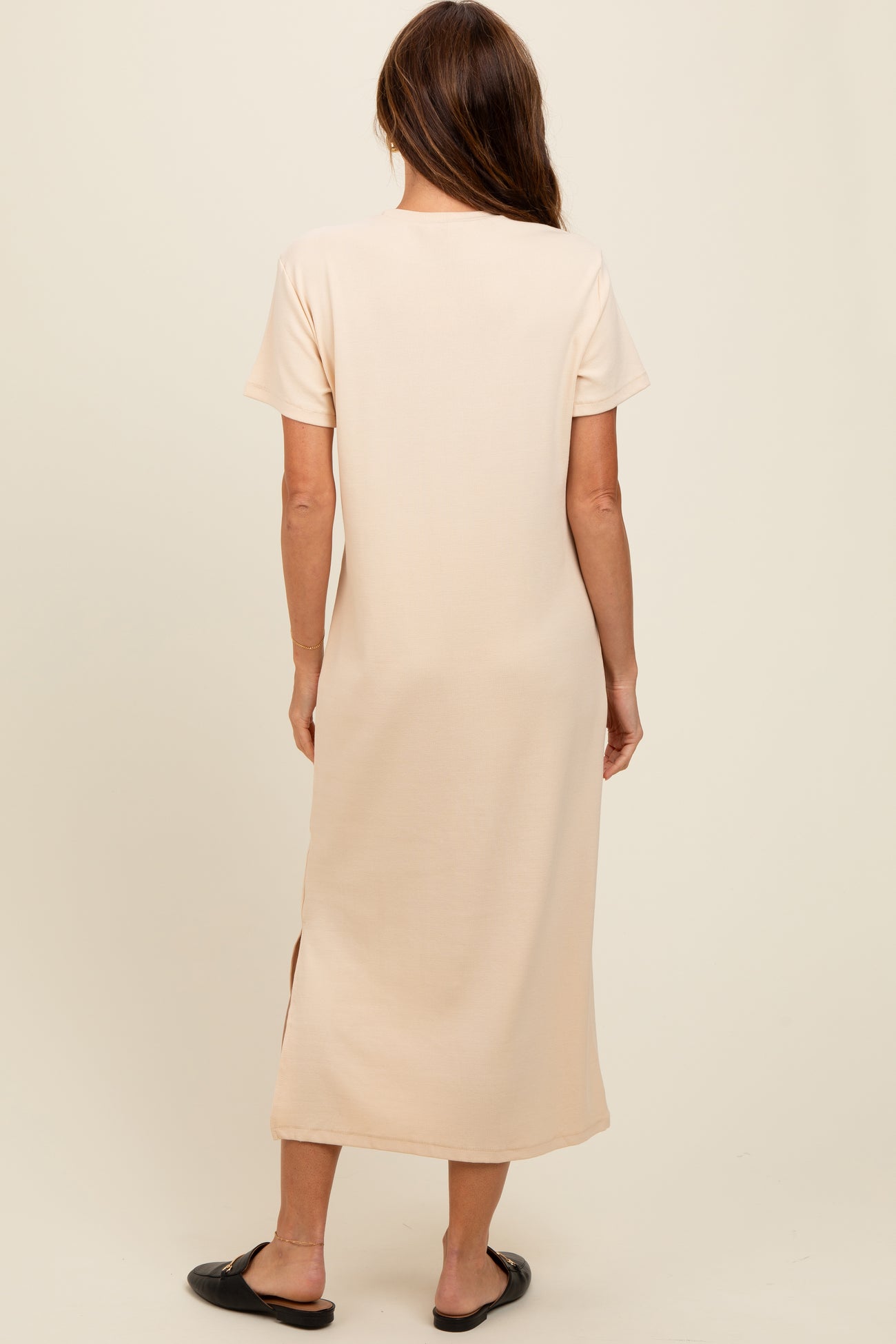 Cream Short Sleeve Side Slit T-Shirt Midi Dress