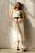 Cream Smocked Contrast Sash Ruffle Tulle Midi Dress