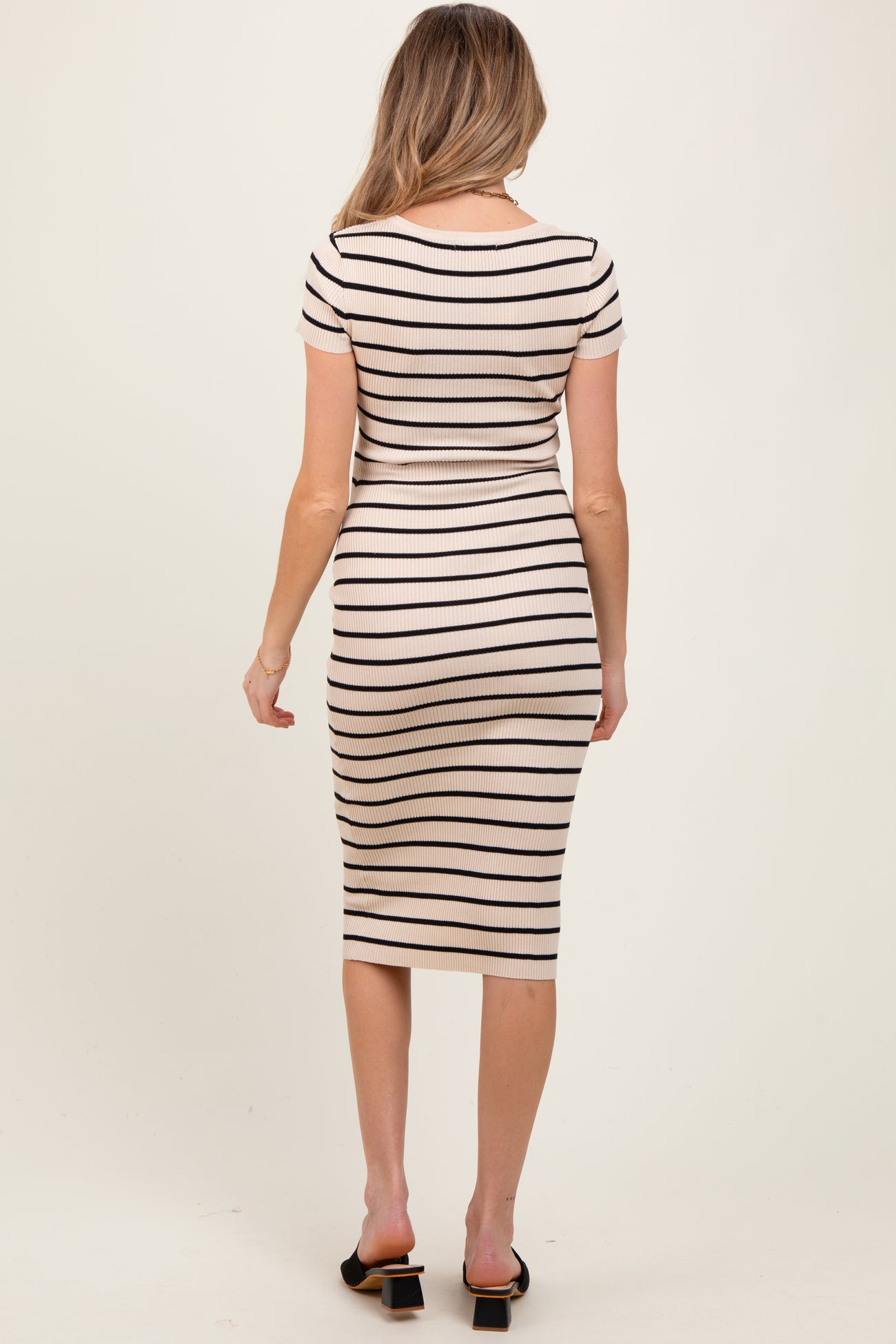 Cream Striped Ribbed Henley Fitted Maternity Midi Dress