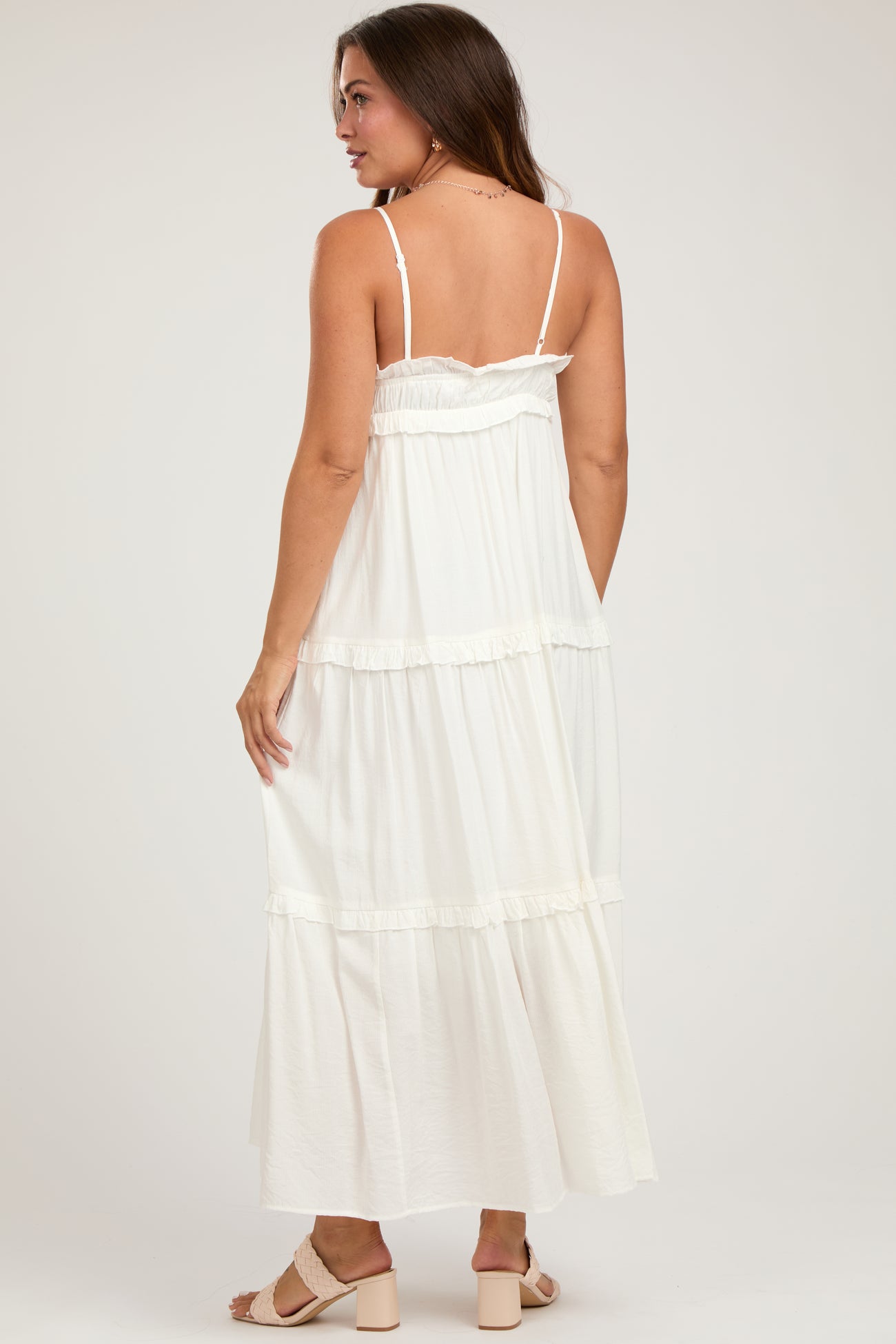 Cream Striped Ruffle Tiered Maternity Maxi Dress