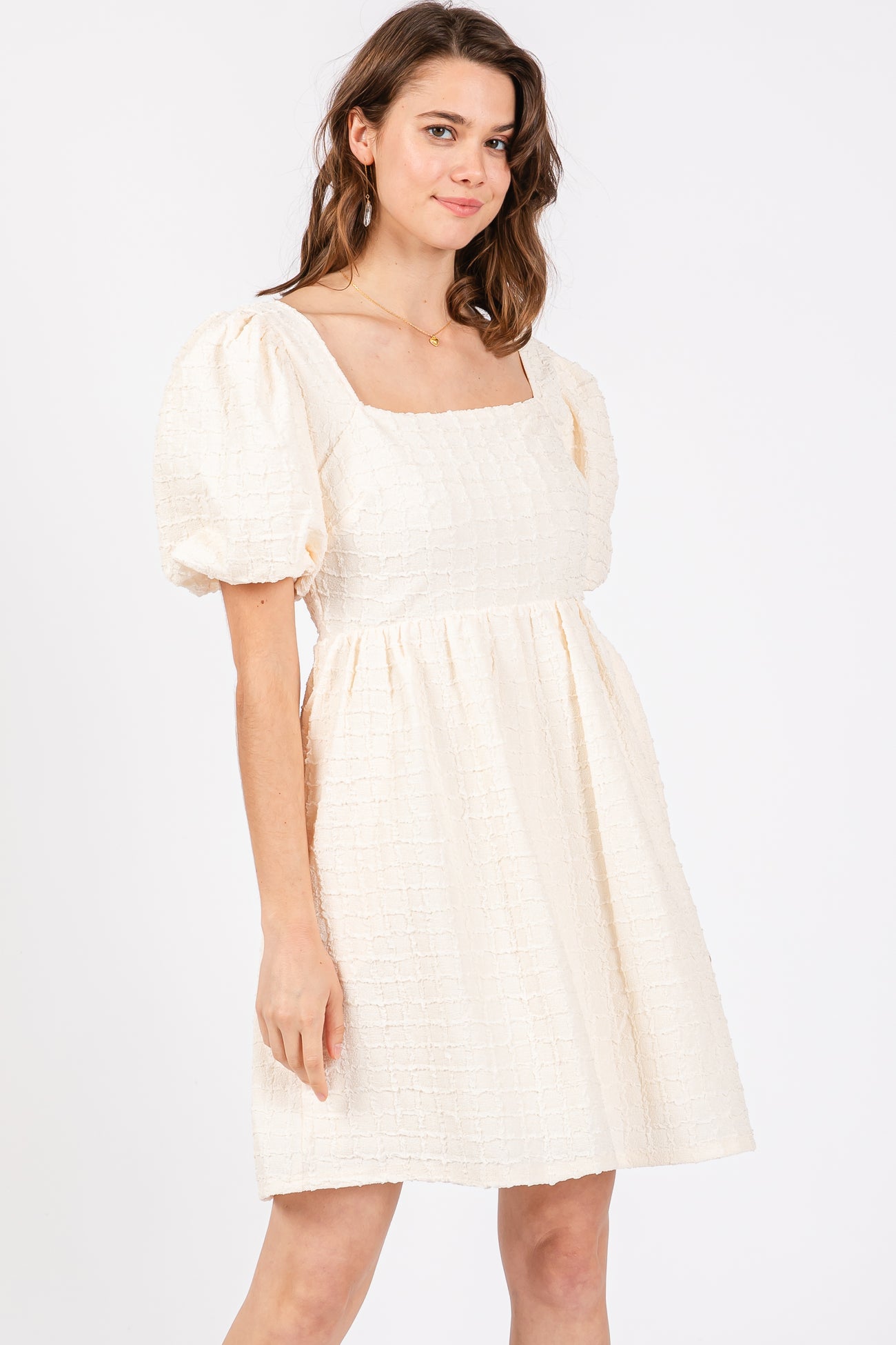 Cream Textured Bubble Sleeve Maternity Mini Dress
