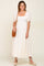 Details A textured gingham maxi dress featuring a square neckline, short puff sleeves, a side zipper, an empire waist and double lined. Content + Care