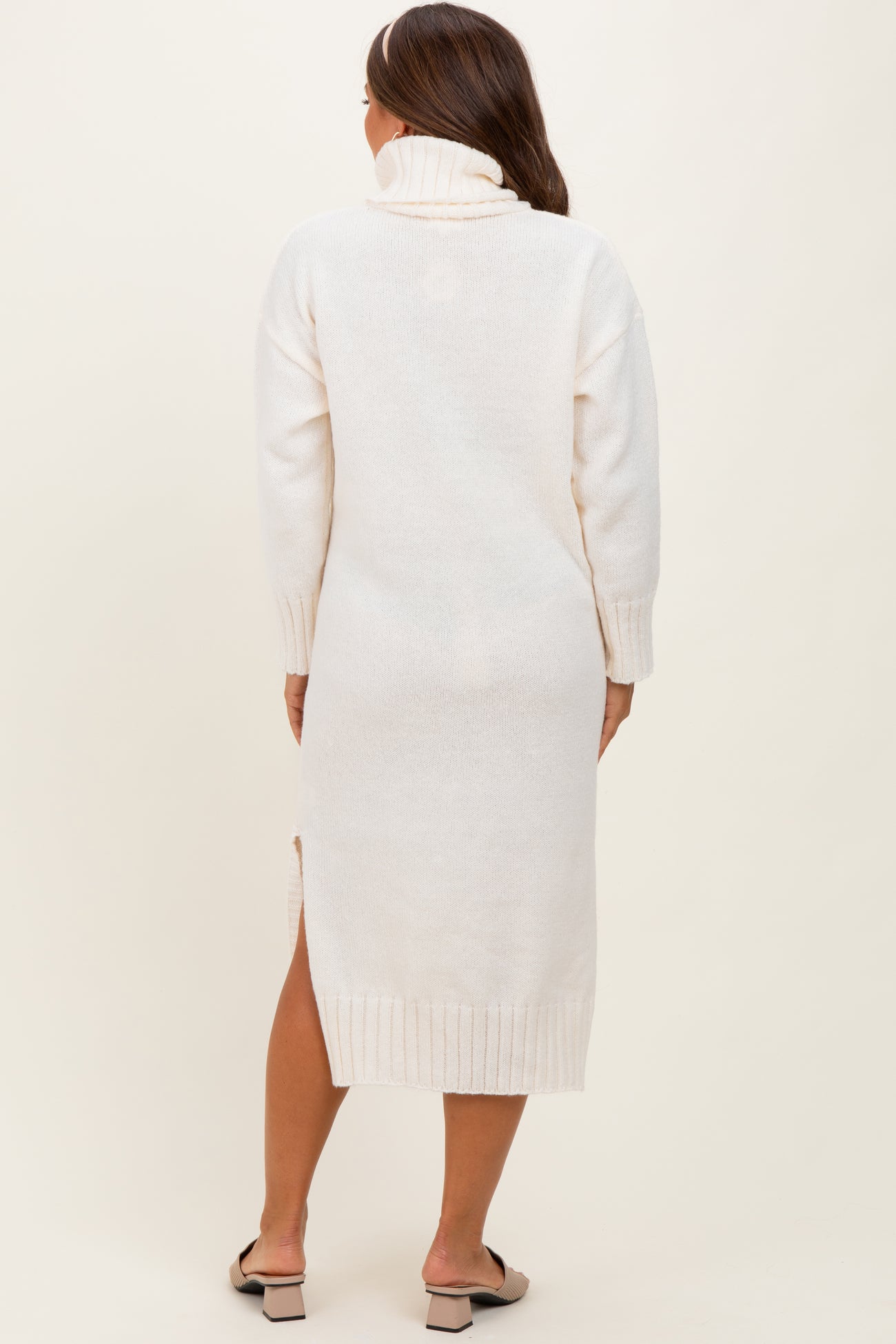 Cream Turtleneck Chunky Knit Maternity Midi Sweater Dress