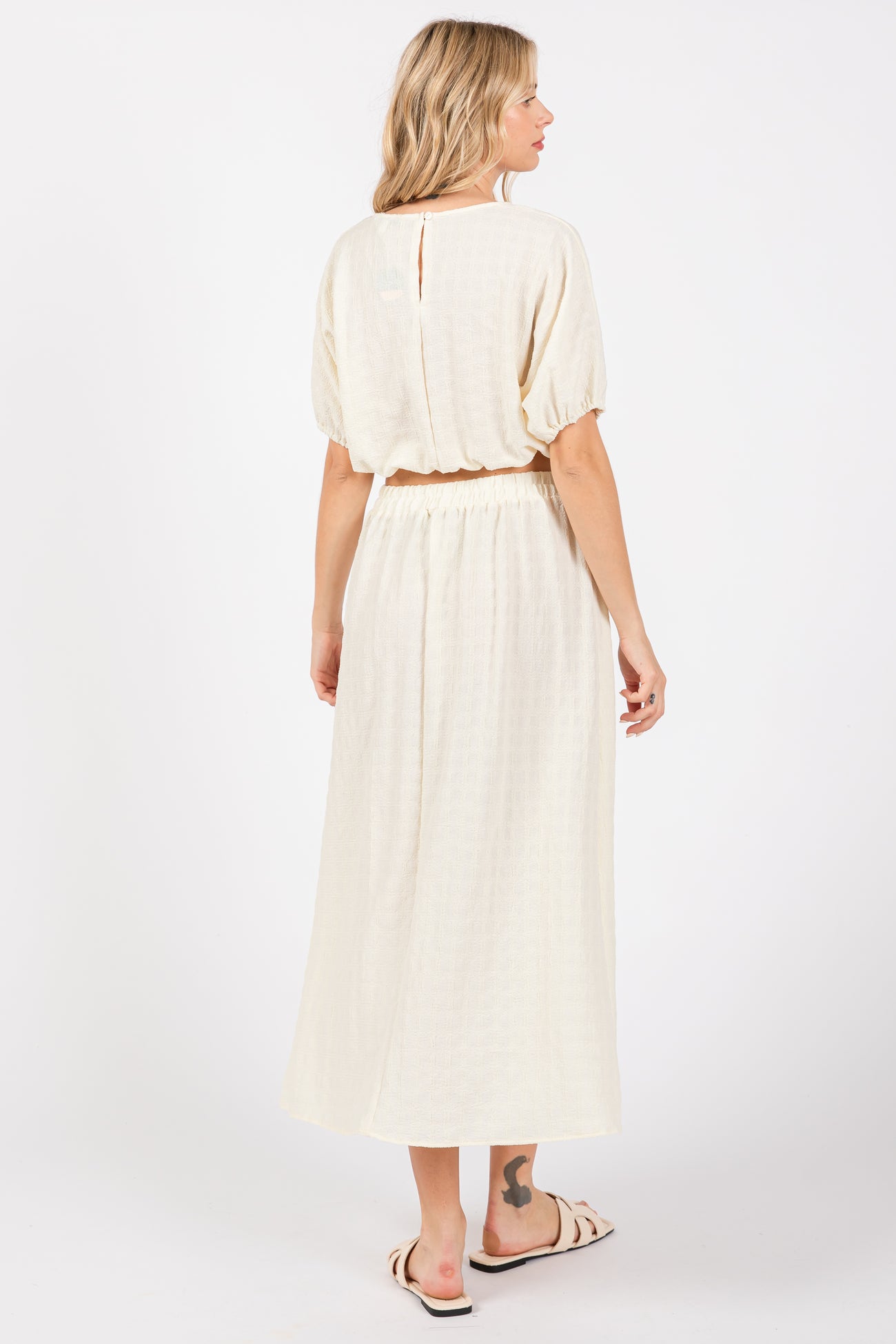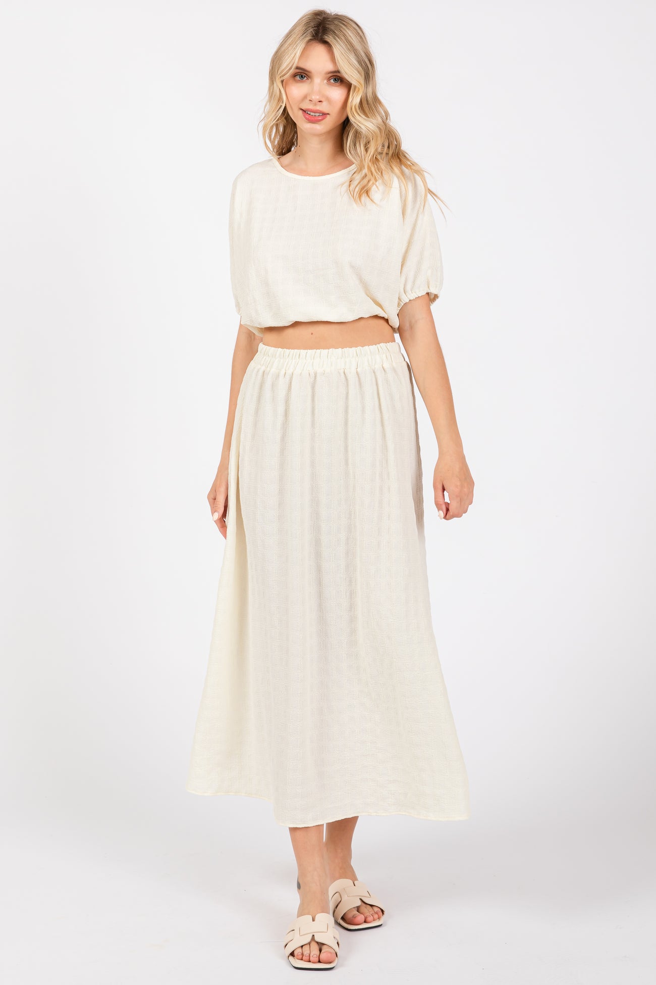 Cream Waffle Texture Crop Top and Skirt Set