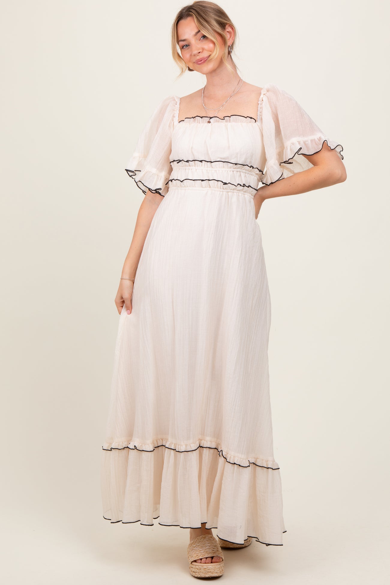 Cream Wide Sleeve Maxi Dress