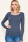 Dark Blue Fine Rib Scoop Neck Long Sleeve Top