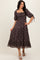 Dark Brown Floral Smocked Sleeve Tie Midi Dress