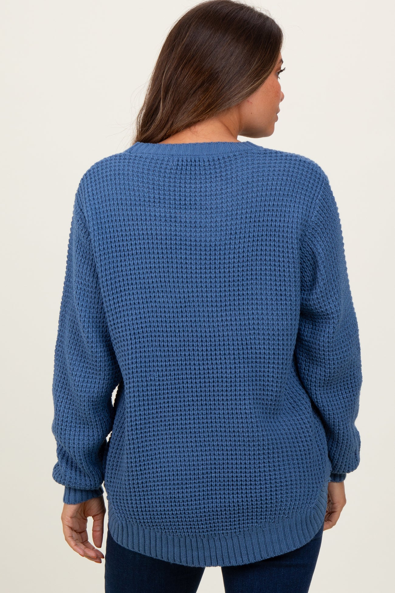 Dark Periwinkle Waffle Knit Rounded Hem Maternity Sweater
