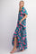 Dark Teal Floral Ruffle Neck Tiered Maxi Dress