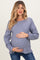 Denim Blue Puff Sleeve Solid Maternity Sweater Top