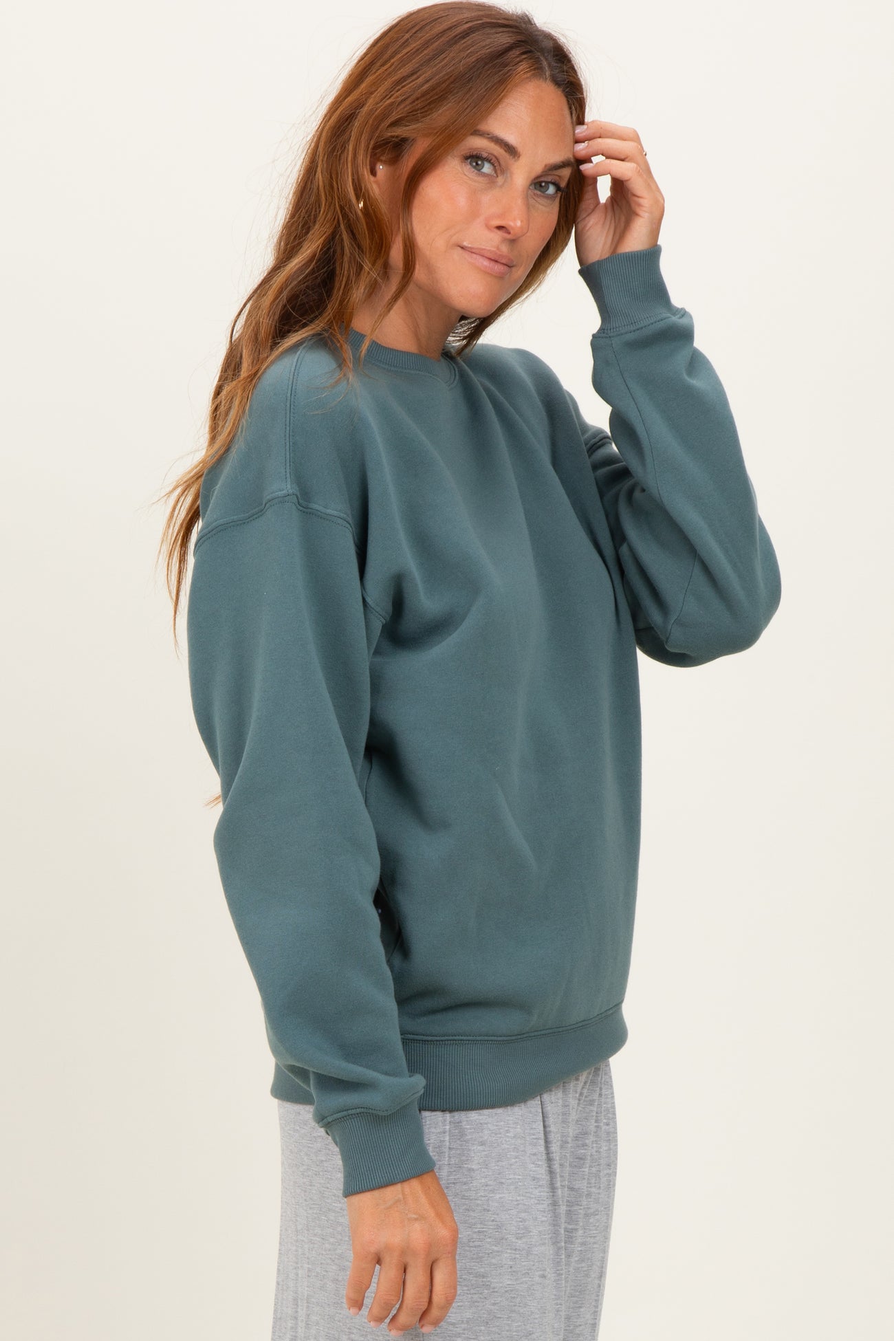 Dusty JadeFleece Crew Neck Relaxed Fit Sweatshirt