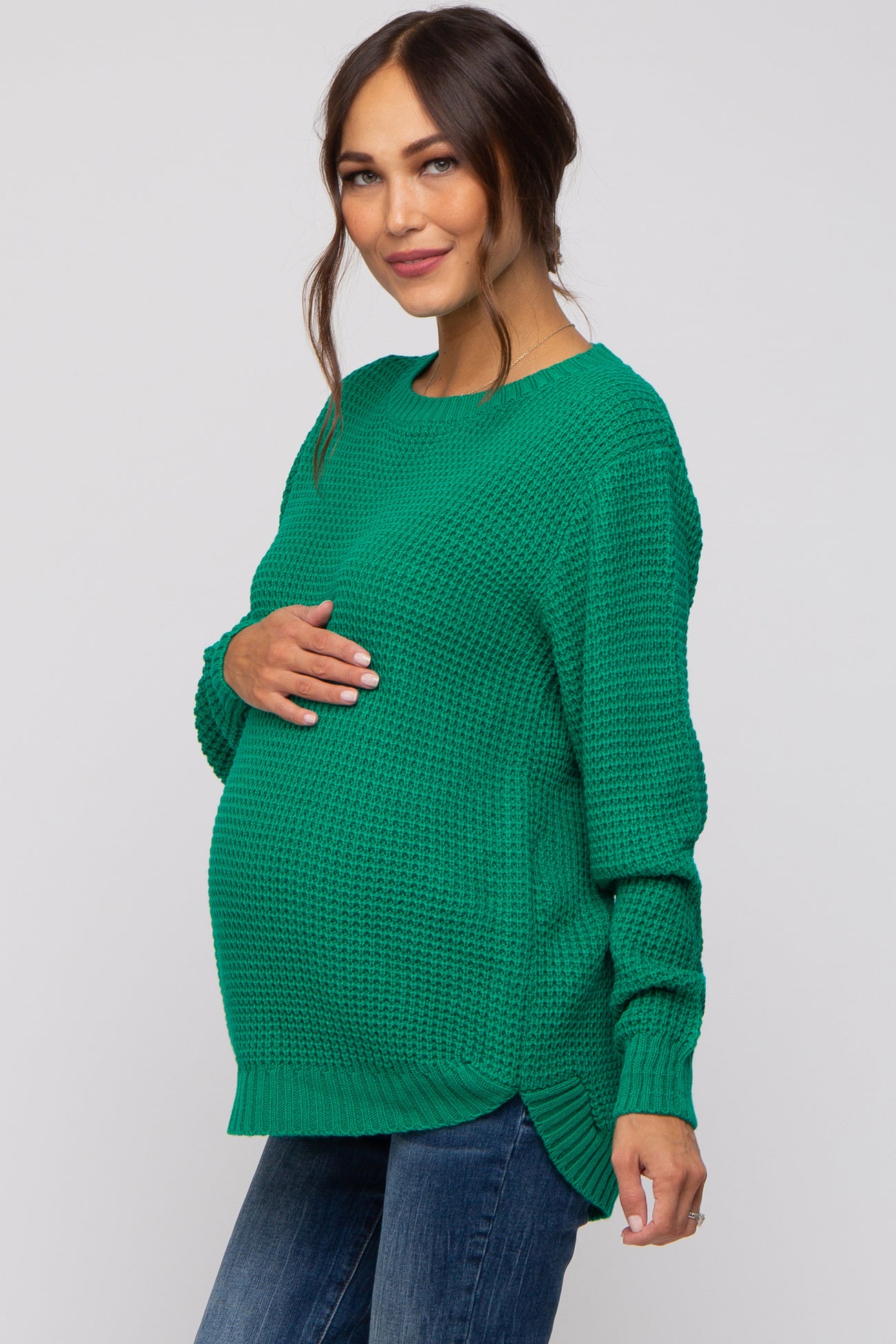 Emerald Green Waffle Knit Round Hem Maternity Sweater