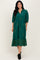 Forest Green Embroidered Leaf Print V-Neck Midi Dress